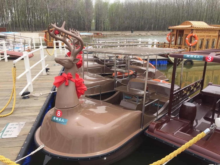 麋鹿造型,特別適合于動物園或濕地公園經營娛樂,帶自排水功能。