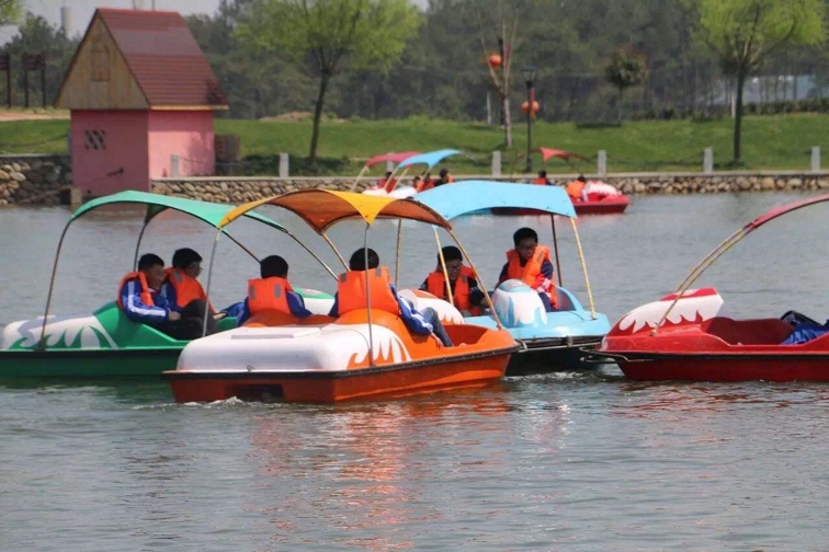 玻璃鋼材質(zhì),經(jīng)典款腳踏船,可情侶或一家三口,***休閑。